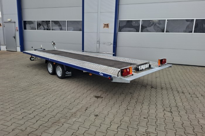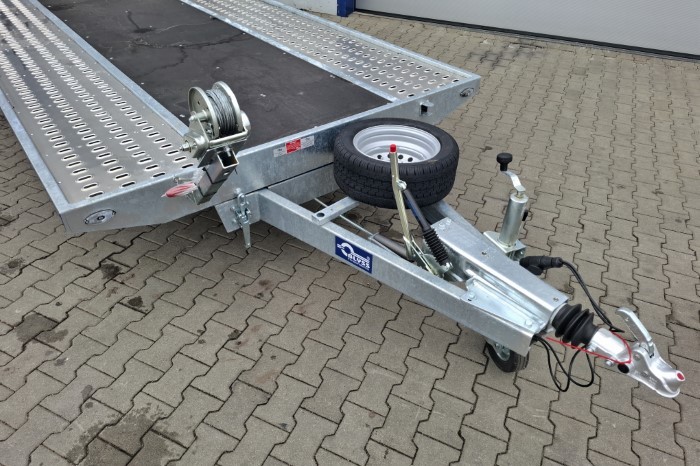Laweta Delta 355521SK to idealne rozwiązanie dla firm transportowych, warsztatów samochodowych oraz osób prywatnych zajmujących się przewozem pojazdów. Dzięki uchylnej platformie, ręcznej wciągarce oraz kołu manewrowemu, załadunek auta jest szybki i bezproblemowy – nawet bez pomocy drugiej osoby. Wyposażenie obejmuje także koło zapasowe oraz instalację elektryczną 12V z 13-pinowym gniazdem, co zapewnia zgodność z większością pojazdów.
