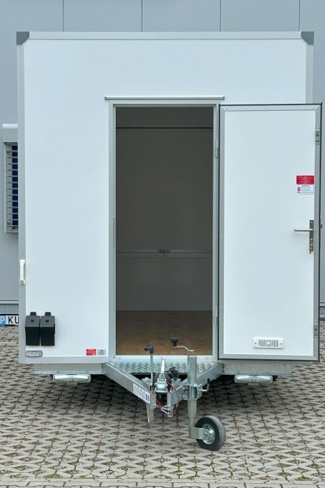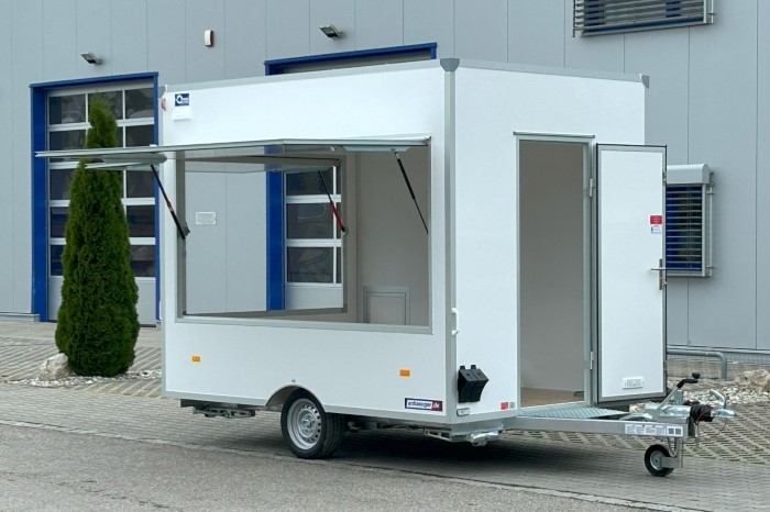 Przyczepa handlowa H13302HL to funkcjonalne i uniwersalne rozwiązanie do prowadzenia handlu mobilnego. Przestrzeń użytkowa o wymiarach 300 × 200 × 230 cm zapewnia wygodne warunki pracy oraz możliwość elastycznego zagospodarowania wnętrza pod różne formy sprzedaży. Dzięki swojej konstrukcji przyczepa świetnie sprawdzi się podczas targów, jarmarków, eventów oraz w sprzedaży sezonowej.