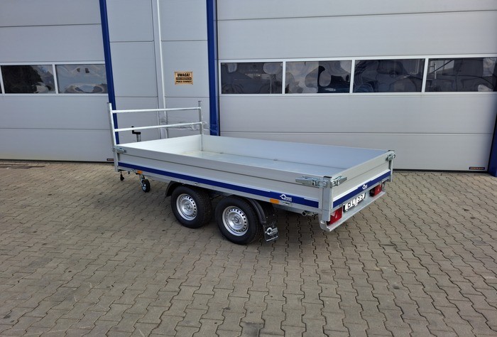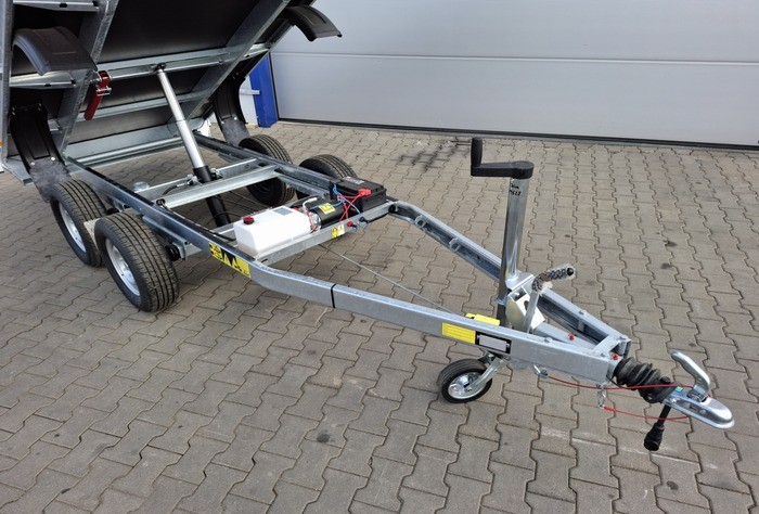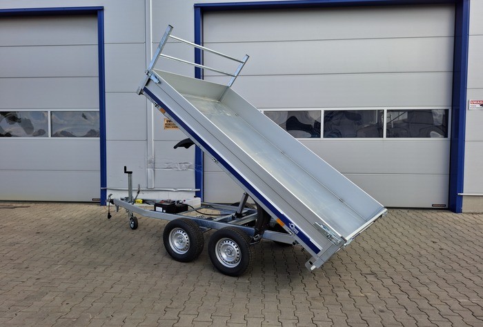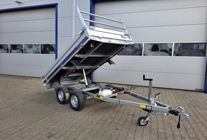 Debon PW 1.2 LUX to nowoczesna, dwuosiowa przyczepa wywrotka o dopuszczalnej masie całkowitej 2000 kg i ładowności do 1470 kg. Wyposażona w elektryczną pompę hydrauliczną z własnym akumulatorem, umożliwia jednostronny wywrot, co znacząco ułatwia rozładunek materiałów. Solidna konstrukcja oparta na stalowej ramie cynkowanej ogniowo oraz aluminiowych burtach zapewnia trwałość i odporność na korozję.