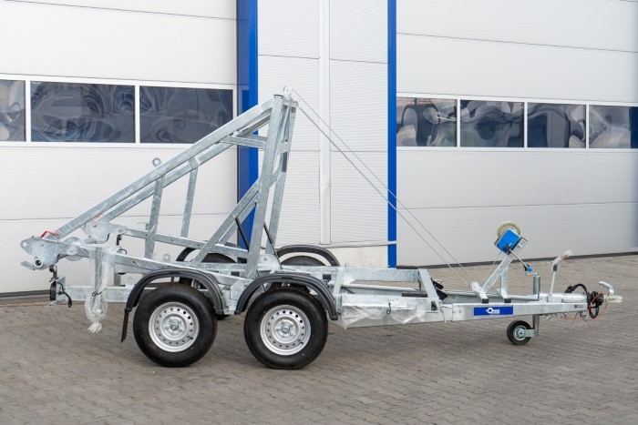 Przyczepa KTT30 V2 PRZYCZEPA KABLOWA to profesjonalne narzędzie transportowe zaprojektowane specjalnie do przewozu bębnów kablowych o średnicy do 240 cm i szerokości do 160 cm. Wyposażona w manualną wciągarkę AL-KO oraz sprężyny gazowe o sile 250 kg, zapewnia wygodę i szybkość pracy, znacznie ułatwiając załadunek i rozładunek. Konstrukcja oparta na stalowej ramie cynkowanej ogniowo oraz polietylenowych błotnikach gwarantuje trwałość i odporność na trudne warunki eksploatacji.