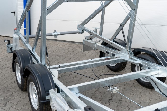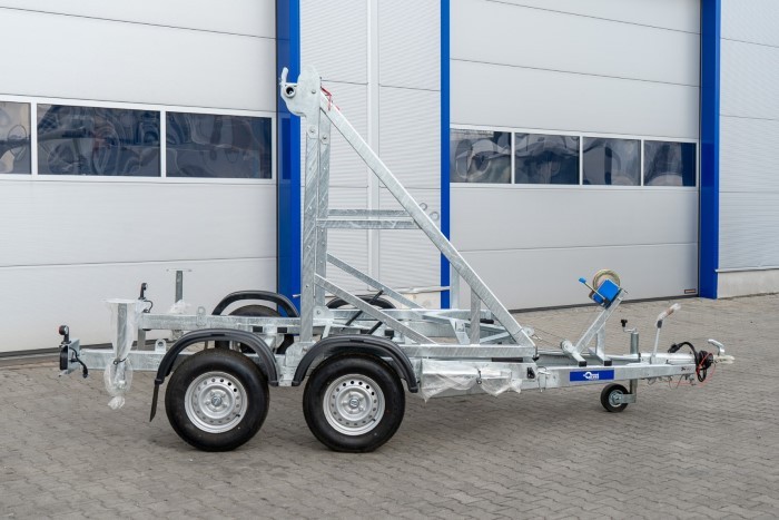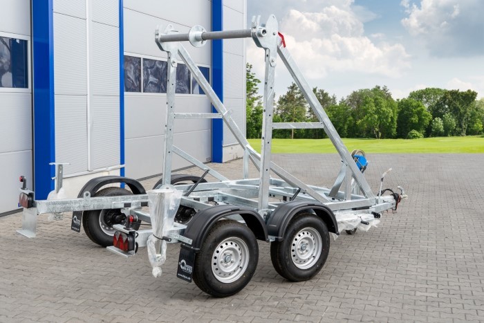 Model KTT30 V2 PRZYCZEPA KABLOWA jest przeznaczony do przewozu bębnów kablowych w branży energetycznej, telekomunikacyjnej i budowlanej. Dzięki zdejmowanej tylnej belce i rozkręcanym podporom (2 z przodu i 2 z tyłu) załadunek oraz stabilność podczas pracy są wyjątkowo łatwe do zapewnienia. Przyczepa obsługuje załadunek samozaładowczy lub przy użyciu wózka widłowego, co zwiększa jej wszechstronność.