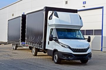 | Opcje | Winda towarowa. Klapka pod windÄ. Dach dwuspadowy. Dach przesuwny. Burtofiranka jedno-dwustronna. Drzwi tylne dwuskrzydĹowe o kÄ cie otwarcia 270 stopni z moĹźliwoĹciÄ zabezpieczenia w pozycji otwartej. Blokada drzwi w pozycji otwartej typu "L" – kpl. Tylna plandeka rolowana do gĂłry. Punkt Ĺwietlny LED w przestrzeni Ĺadunkowej. OsĹony antyrowerowe. |