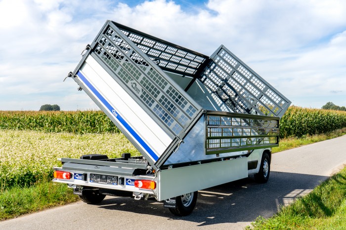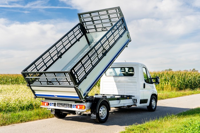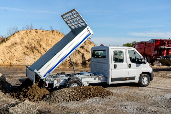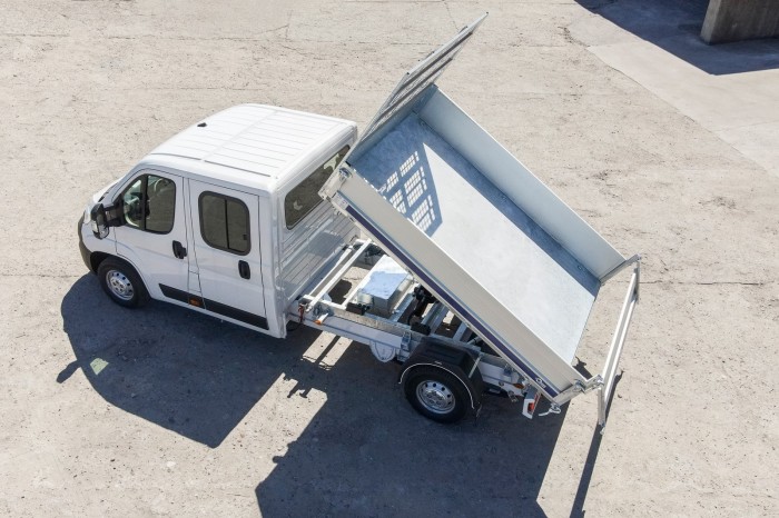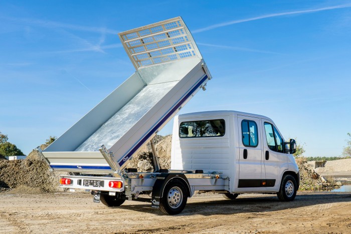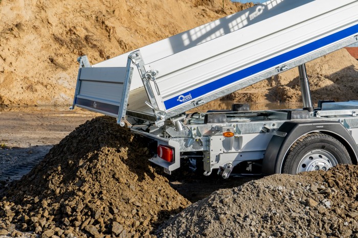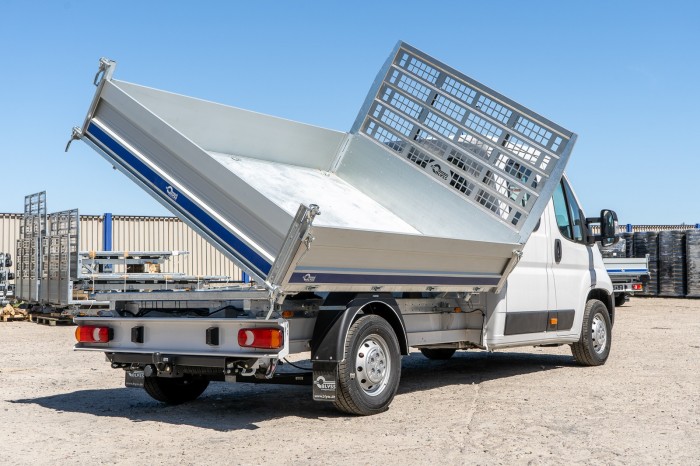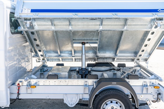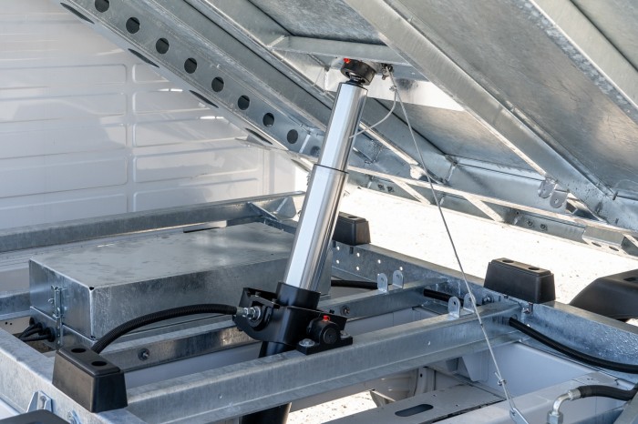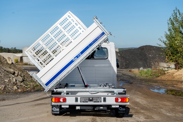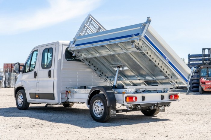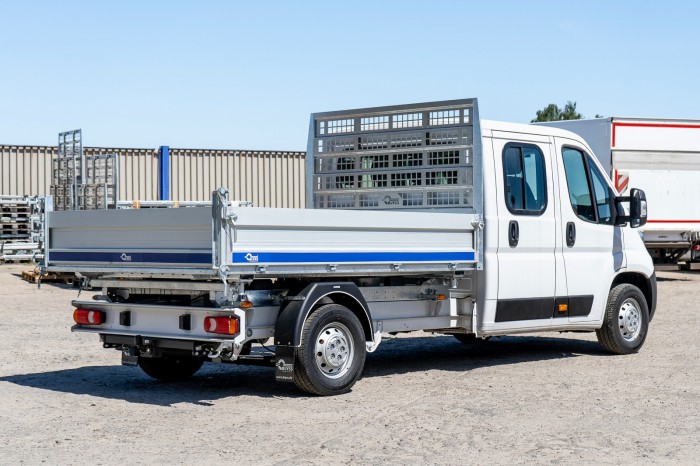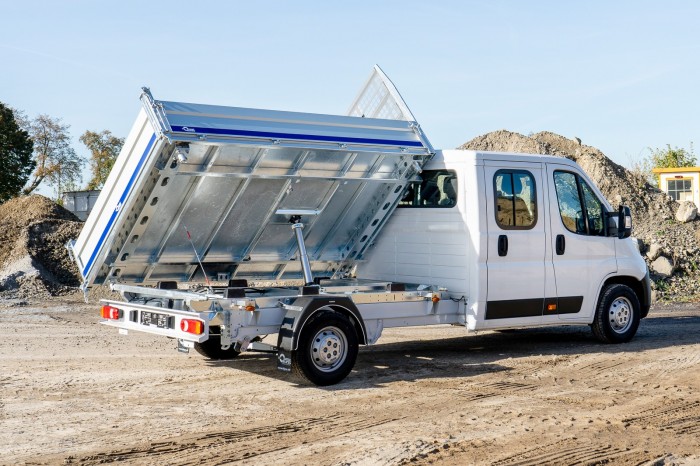 Dzięki zastosowaniu hydraulicznego siłownika możemy uzyskać trójstronny wywrót, który umożliwia szybki rozładunek.